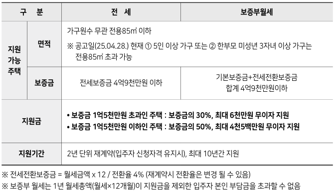 : 보증금의 30%, 최대 6천만원까지 무이자 지원 가능