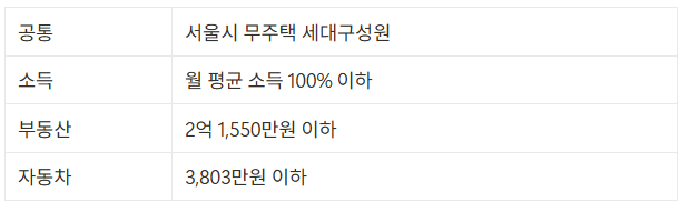 • 서울시에 주민등록이 등록된 무주택 세대구성원으로서