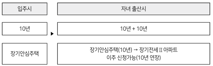 장기안심주택에 당첨되어서 살다가 자녀를 출산하게 될 경우 장기전세2 아파트로 옮겨가서 최대 20년을 지원 받으며 살 수 있는 것!
