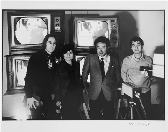 1971년 뉴욕 보니노 갤러리(Bonino Gallery)에서 촬영된 사진 속에 존 레논(John Lennon, 1940~1980) , 오노 요코(Ono Yoko, 1933~), 백남준, 슈야 아베의 모습과 그들의 배경이 된 텔레비전, 이 모든 상황의 조합이 도전적이다. 음악인, 플럭서스 멤버들과의 인연, 오노요코, 그리고 공학자 아베 슈야와 함께한 백남준은 어떤 경계도 스스로 만들지 않았다. 오노 요코와 백남준의 마지막 만남은 2006년 그의 죽음을 애도하는 퍼포먼스 장례식에서의 넥타이 자르기, '입장객의 넥타이를 자르는 행위'가 그가 생전에 어떤 예술가였는지를 알려주는 현장이었다.