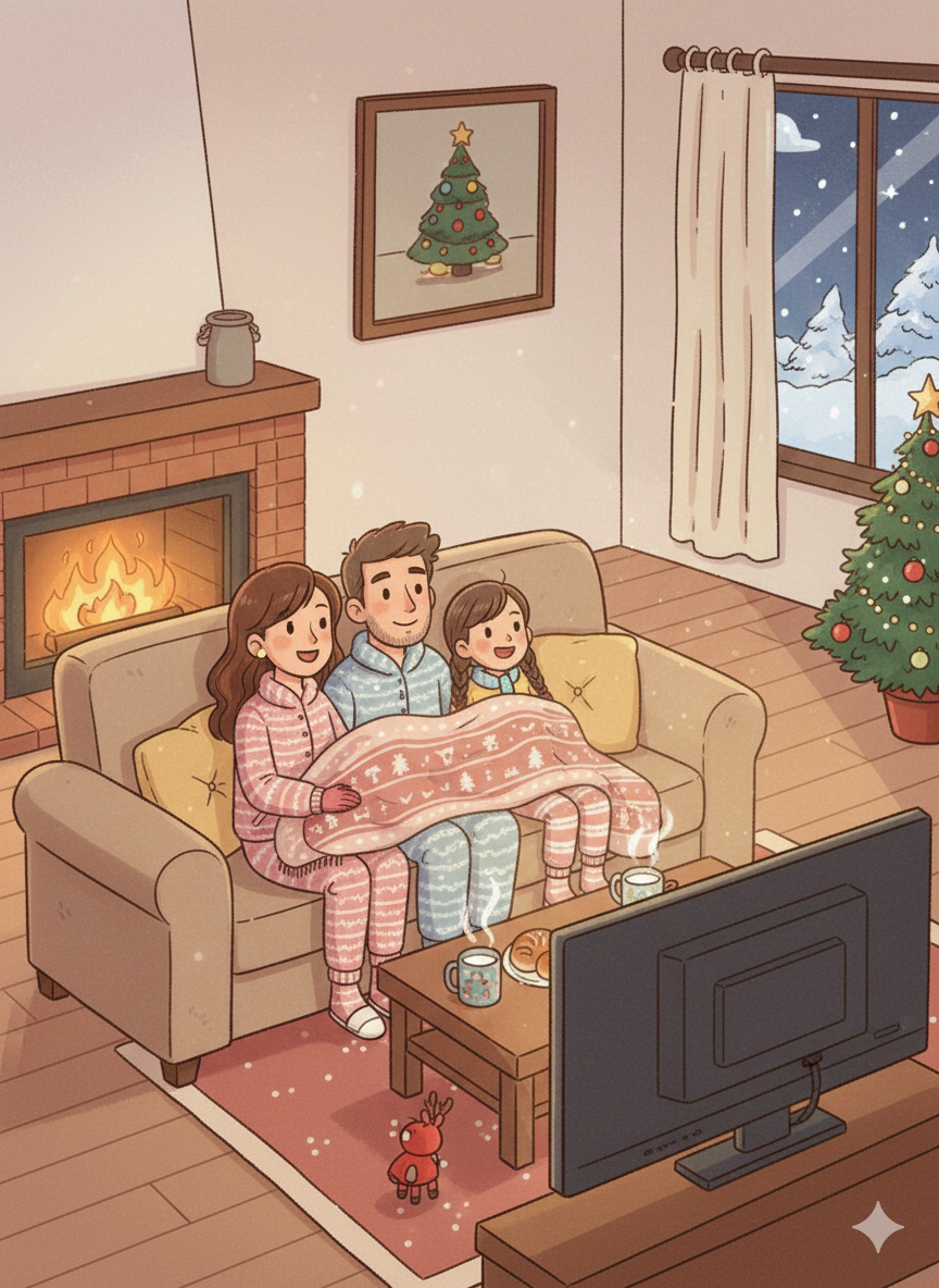 예의범절에 대한 폭풍 잔소리를 늘어놓으며 억겁 같은 하산 시간을 버티고 나서야 겨우 집에 도착했다. 현관문을 열자마자 아이를 뜨끈한 욕조에 밀어 넣고 수면 잠옷으로 무장시켰다. 우유를 데우고 호빵을 쪄서 크리스마스 영화를 틀었다. 세 가족이 나란히 소파에 앉아 목 끝까지 이불을 덮으니 비로소 평화가 찾아왔다.