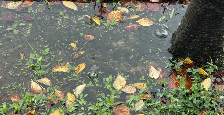 계속되는 비에 연못처럼 변한 물웅덩이.