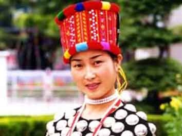 남자 집에서 무당(巫师)을 청해 점을 본 후 무당이 가리키는 방향으로 여자를 선택한 후 중매장이를 통해 여자 집에 가서 약혼을 신청하고 많을 재물을 줘야 한다. 이런 형식은 가정이 좀 부유한 집에서 하는 방식이다.
