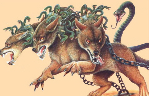 이윽고 강을 건너 맞은편에 닿으면 3개의 머리에, 머리털처럼 억센 뱀을 목에 건 케르베로스라는 개가 짖어대며 달려든다.