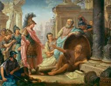 마케도니아의 왕인 알렉산드로스가 그리스 전역의 장군이 되어 페르시아를 공격하려 출병하기에 앞서 많은 사람들이 그를 찾아와서 축하의 말을 했는데 알렉산드로스의 장군 취임이고 뭐고 그러한 것에는 아무런 관심도 없었던 것디오게네스는 그를 찾아와 인사의 말조차 하지 않는 것이었다.