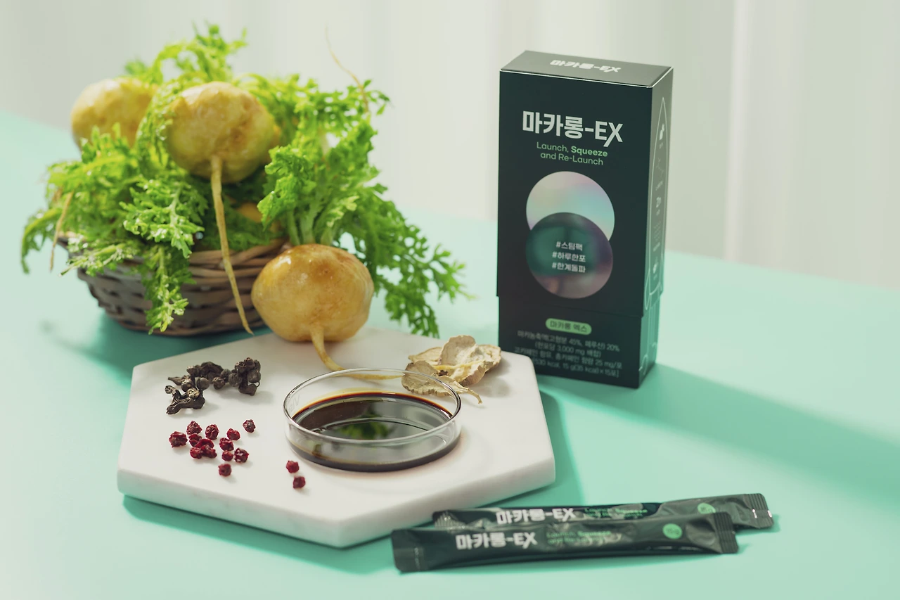 김선현 대표님 : 저희는 식품을 만드는 데에 함량을 매우 중요하게 생각해요. 근데 ‘마카롱-EX’ 한 포, 이 정해진 15g 안에 원하는 권장량을 다 집어넣는 게 너무 어려운 거예요. 마카를 그냥 먹어보면 콩가루 같아요. 이를 농축액으로 만드려니 원가가 일곱 배 이상 올라가고, 좋은 성분이지만 맛없는 성분들을 넣다보니 맛이 나빠지고, 그래서 이 두 가지가 매우 어려웠어요.