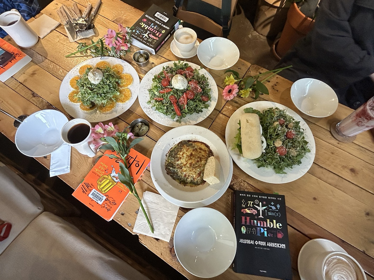 산뜻한 봄날씨에 입구부터 풀내음 향긋, 초록초록한 인테리어의 카페 분위기가 어우러져 다들 기분이 좋아 보였다. 다행이었다(응?). 멋진 브런치 한 상 차림(옥 감사:))까지 더해지니 여기가 섬북동인지, 킨포크인지, 헤헤.