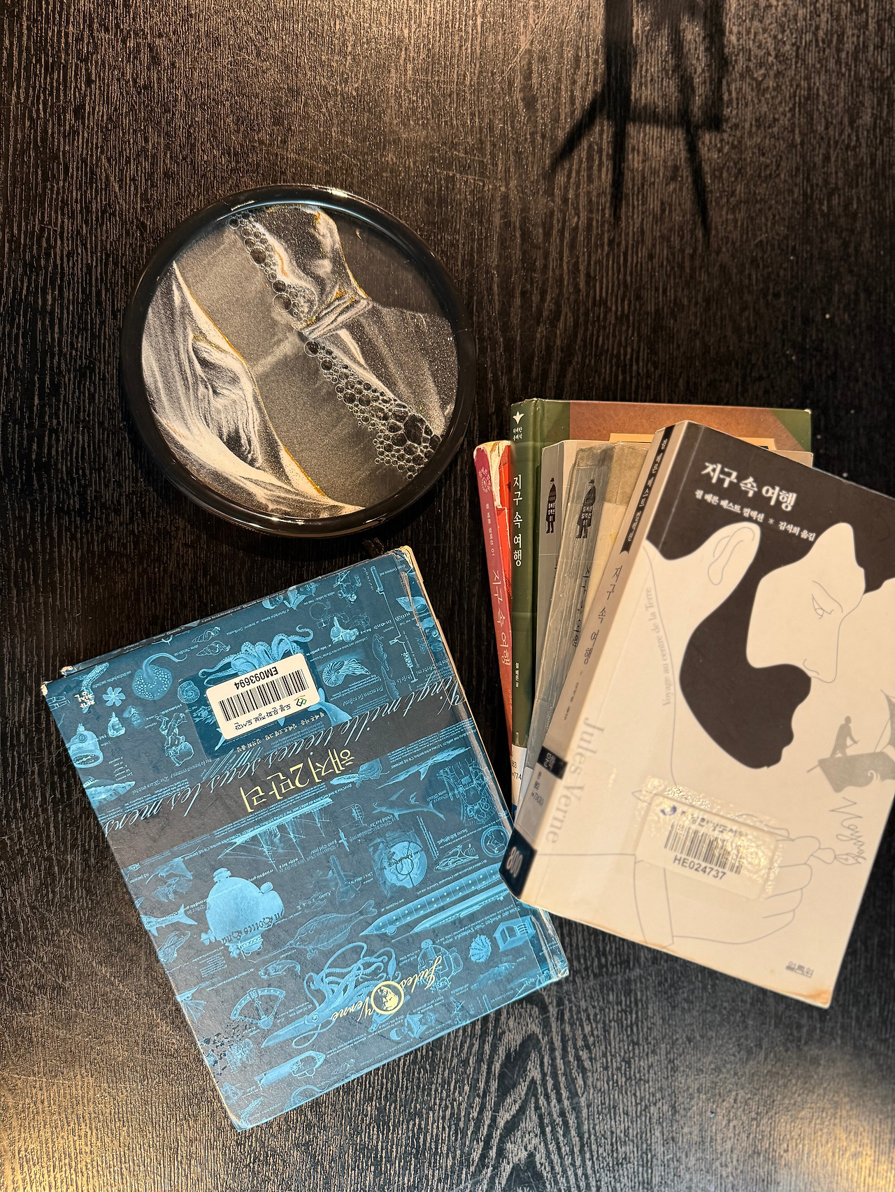 마지막으로 빠질 수 없는 에피소드. 선은 책을 착각해 [해저 2만리]를 들고 왔다. 순간 모임은 웃음바다. 그래도 묘하게 이어졌다. 지구 속에서 바다를 만난 그들이, 어쩌면 해저 2만리로 연결되었을지도 모른다는 상상이 피어났다. 다른 멤버들은 쥘 베른의 다른 작품들—[80일간의 세계일주], [해저 2만리], [신비의 섬]—도 읽고 싶다는 이야기를 나눴다. 이번 책이 그만큼 유쾌하고 풍부한 상상력을 안겨주었기 때문이다.