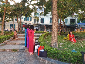 호안끼엠 같은 관광명소에는 아오자이를 입고 친구들과 사진을 찍는 여자들을 쉽게 볼 수 있고 (이건 젊은 사람들만의 이벤트가 아니다.) 명절은 물론, 결혼식, 크고 작은 파티는 기본이고, 심지어 학교 행사나 학부모 상담 등 조금이라도 격식을 차려야 하는 곳에 갈 때는 그들은 거의 아오자이를 입는다. 우리로 치면 한복을 입고 선생님을 만나러 오는 격이랄까~ ^^