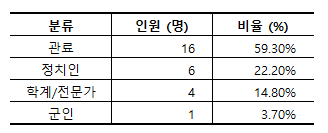 *총 27명의 장관을 분석한 결과, 겸직 등의 중복을 포함한 추산