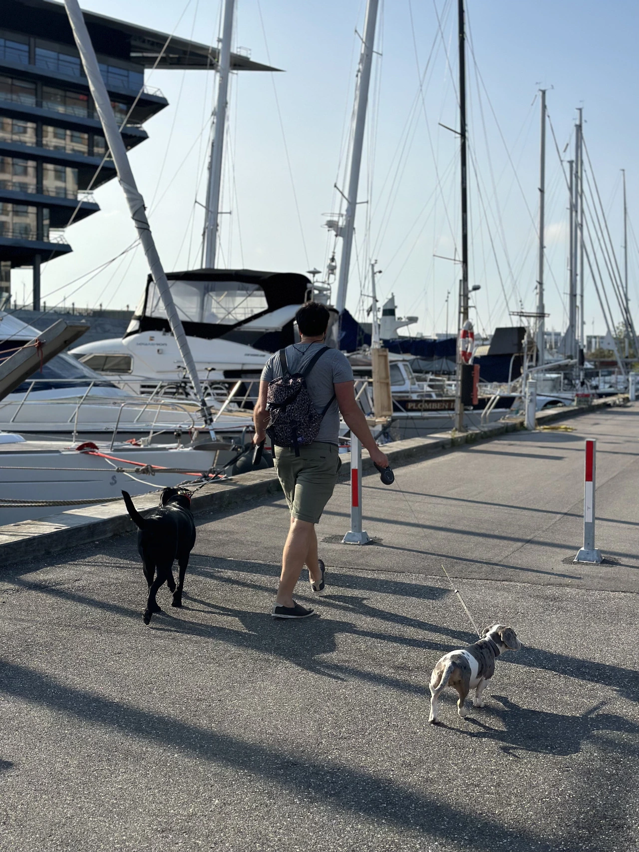 쨍 한 아침 햇살이 바다에 그대로 부딪혀 생긴 윤슬이 화려하게 빛나고 있었고, 강아지와 함께 산책하는 사람, 사진에서나 보던 작고 멋진 요트와 배가 줄지어 정박해 있는 모습, 그 반대편에는 초록 풀과 꽃이 넓게 펼쳐진 정원이 있었다.