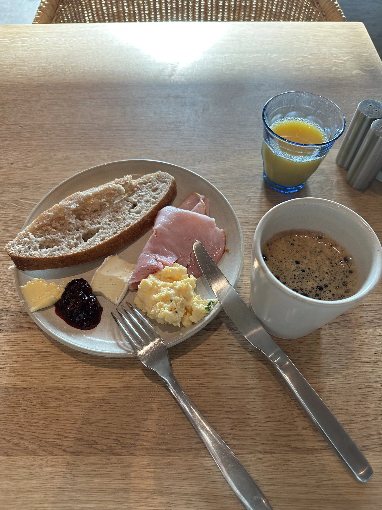 나는 풍경이 잘 보이는 긴 식탁에 자리 잡았다. 모든 음식은 정말 너무 신선하고 맛있었는데, 특히 빵과 치즈, 요거트는 박수가 절로 나왔다. 유럽에서 조식으로 감동받아 보기는 처음.