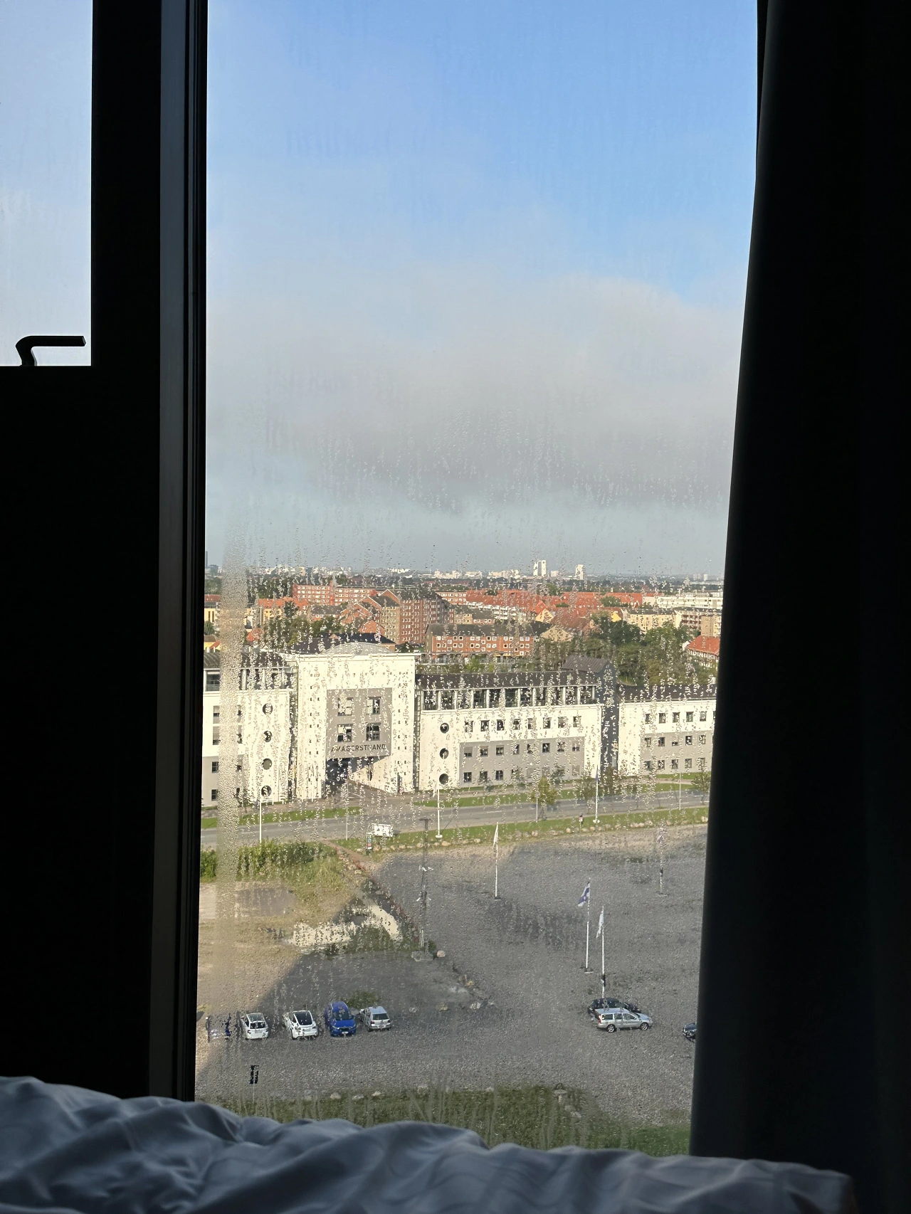 파란 하늘과 회색구름, 붉은 벽돌 건물, 거기에 창문에 맺힌 물방울까지. 나 정말 북유럽 왔네!!