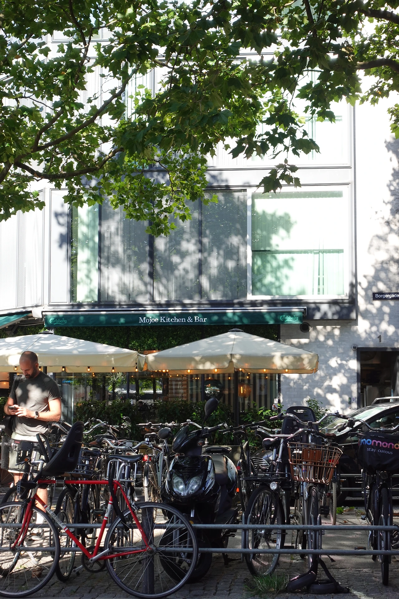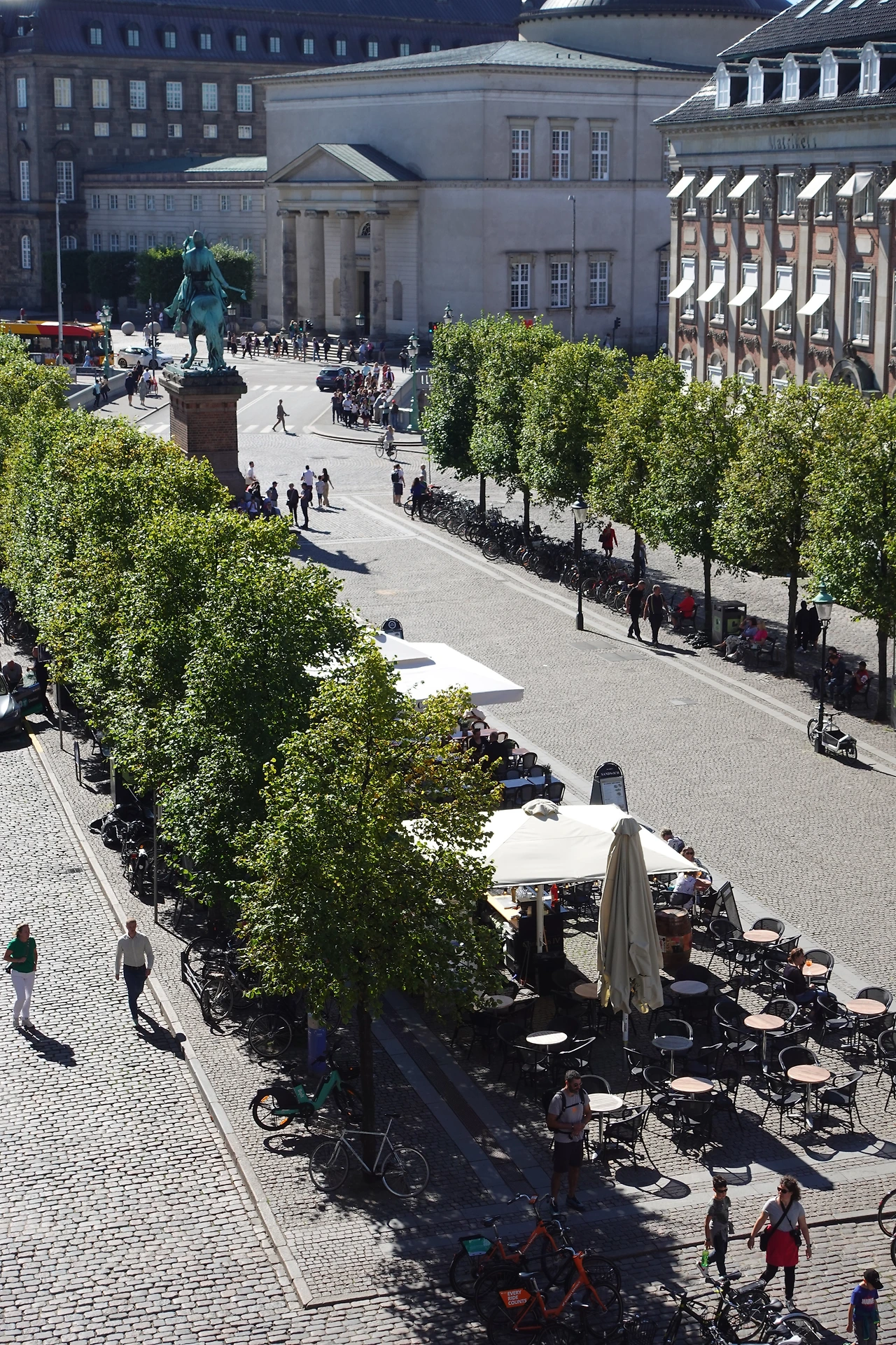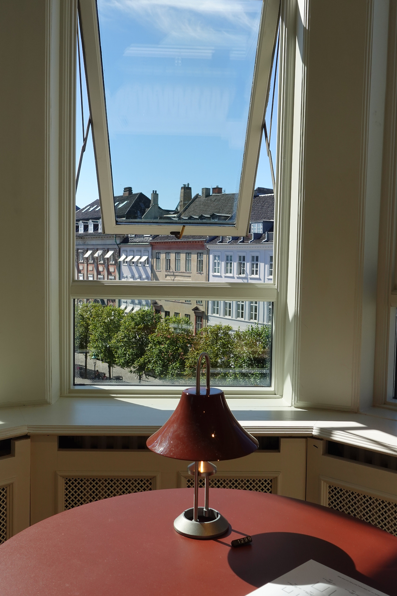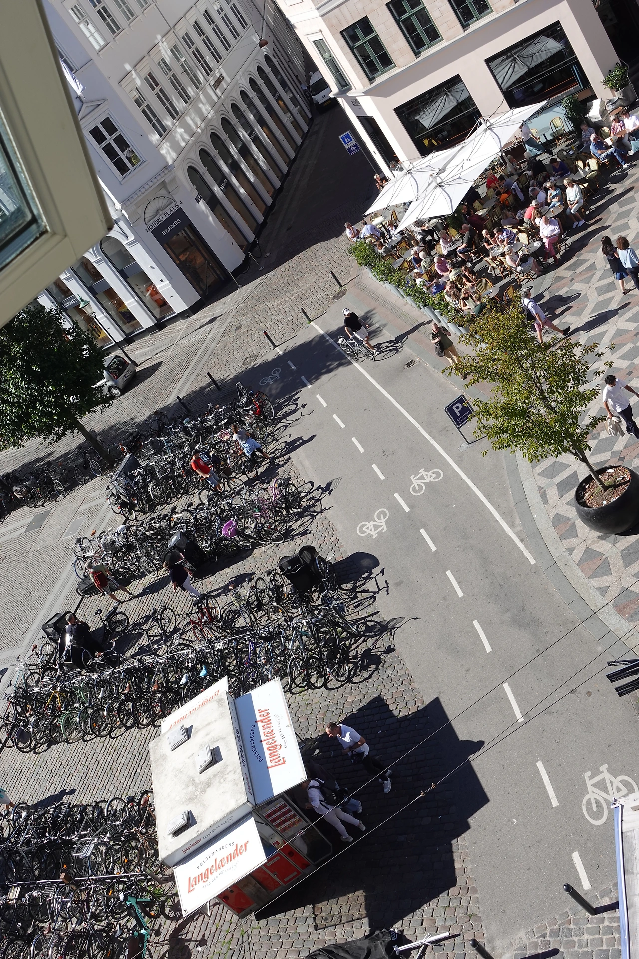 이렇게 큰 창이 많아서 공간이 더 따뜻하게 느껴진다. 창밖으로 들리는 거리의 소리도 기분 좋고, 위에서 보니 또 다른 코펜하겐 도심 거리. 역시 자전거는 빽빽하게 주차되어 있다.