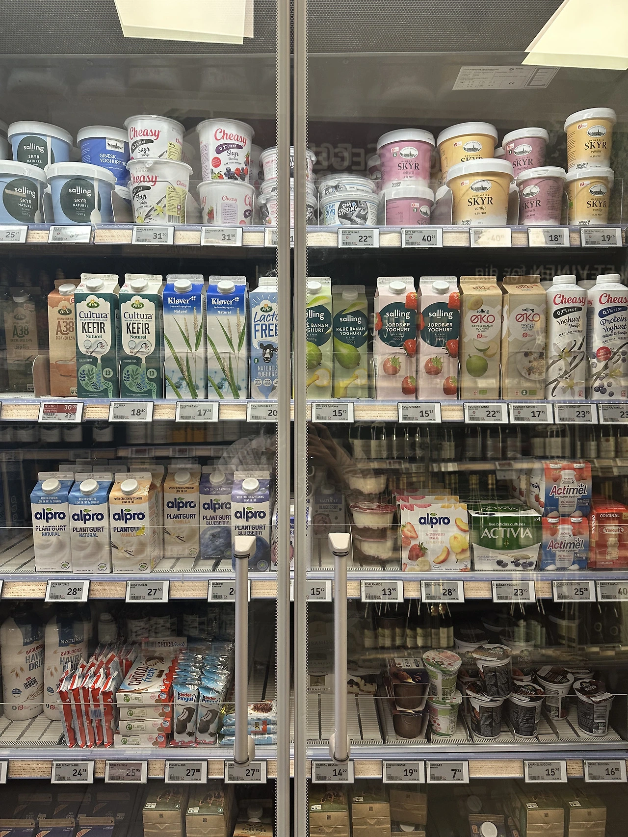 유럽여행에서 제일 부러운 것은 향신료 코너에 빽빽하게 나열된 다양한 제품. 코펜하겐은 거기에 정말 다양한 맥주 브랜드가 많아서 라벨 구경만으로도 시간이 훌쩍 간다. 그리고 대망의 유제품 코너. 사진에 보이는 진열대 양쪽으로 넓게 펼쳐져 있었다. 너무 다양한 맛 많아서 이것저것 먹어봤는데 먹는 것마다 성공적인 맛에 감동..