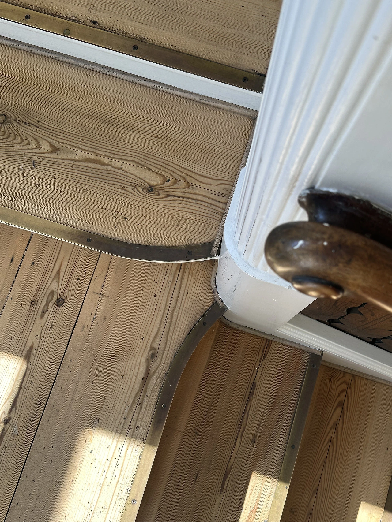 그리고 계단으로 다른 층 이동하면서 본 건물 디테일. 계단 코너 라운드와 창문으로 들어오는 끝내주는 채광, 그리고 철망 디테일이 꽃 이라니! 언젠간 내 집에 써보고 싶은 디테일이었다.