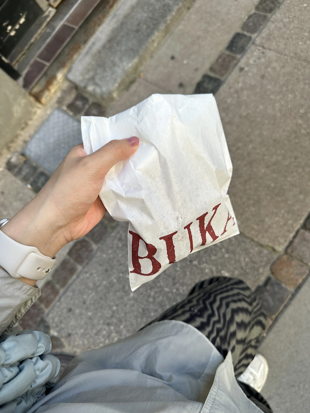 그러다 발견한 부카 베이커리. 카다멈 브리오슈번을 꼭 먹어보고 싶어서 지도에 찜해두었던 베이커리라서 고민 없이 바로 들어가서 딱 하나 남은 빵을 사들고 나왔다.