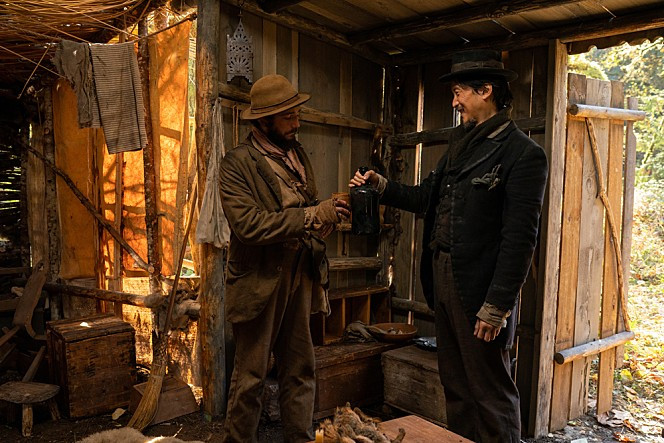 어딘가를 경유해야만 하는 시선과 불완전한 형상을 포착하는 일들. <퍼스트 카우>는 시작부터 이걸 숨기지 않는다. 해골을 거쳐야만 우리는 이들의 진한 우정을 바라볼 수 있지 않았나. 묻혀 있던 해골을 발견해 내야만 우리는 그제서야 플래시백으로 그들의 일상을 들여다볼 기회를 얻게 되는 것이다. 조금 과장해서 말하자면 해골은 두 사람의 우정과 관객을 매개하고 있는 일종의 필터인 셈이다. 인디언과 백인 그리고 중국인이 함께 하는 대화에서 통역을 거쳐야만 성취되는 소통 장면도 묘하게 떠오른다. 알레고리를 굳이 담아내려는 시도들이 딱히 없었는데도 겹겹이 쌓인 소소한 플롯과 설정들이 알아서 영화를 풍성하게 가꿔주는 느낌을 받았다. 인물들은 살기 위해 이동하고, 생계를 위해 모종의 행위를 반복하고, 자본 논리에 종속될 수밖에 없는 사회 흐름에 편입되어야만 한다. 그들의 이야기는 굳이 상징과 장치들을 잔뜩 배치하고자 하는 욕망을 경유하지 않더라도 매우 자연스러운 흐름으로 구축될 수 있다. 이때 놀라운 건, 물 흐르듯 묘사되는 소박한 소동들을 통해 삶과 죽음을 아우르는 규모와 깊이를 동시에 획득하는 데 성공한다는 점이다.