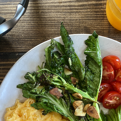 케일과 브로콜리를 교배해 만든 텐터스템(tenderstem)과 비슷하게 생겼지만 꽃 부분이 보라색인 게 다르다. 녹색이 아닌 채소는 일단 눈이 간다. 맛도 조금 다르다. 텐더스템이 고소한 쪽이라면, 퍼플 스프라우팅 브로콜리는 보다 달콤하고 입체적인 맛을 가진다. 처음 먹었을 때 깜짝 놀랐다. 이게 브로콜리 맛이라고? 줄기는 아스파라거스와 비슷한 맛과 식감이라고 표현하지만 미세한 킥이 있다. 아스파라거스처럼 완만하지 않고 기분 좋은 날카로움과 연한 단맛이 난다. 꽃 부분은 고소하고 씹히는 맛이 즐겁다.