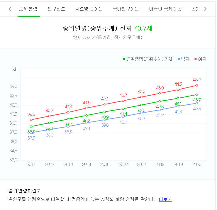 위 사진은 우리나라 중위연령입니다.