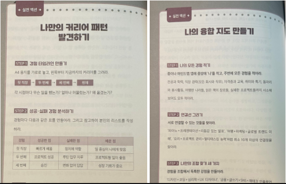 나의 융합 지도 만들기: 전공, 직무, 취미 등 사소해 보이는 모든 경험을 적고 이들 사이의 연결선을 찾아 나만의 독특한 강점을 발견합니다.