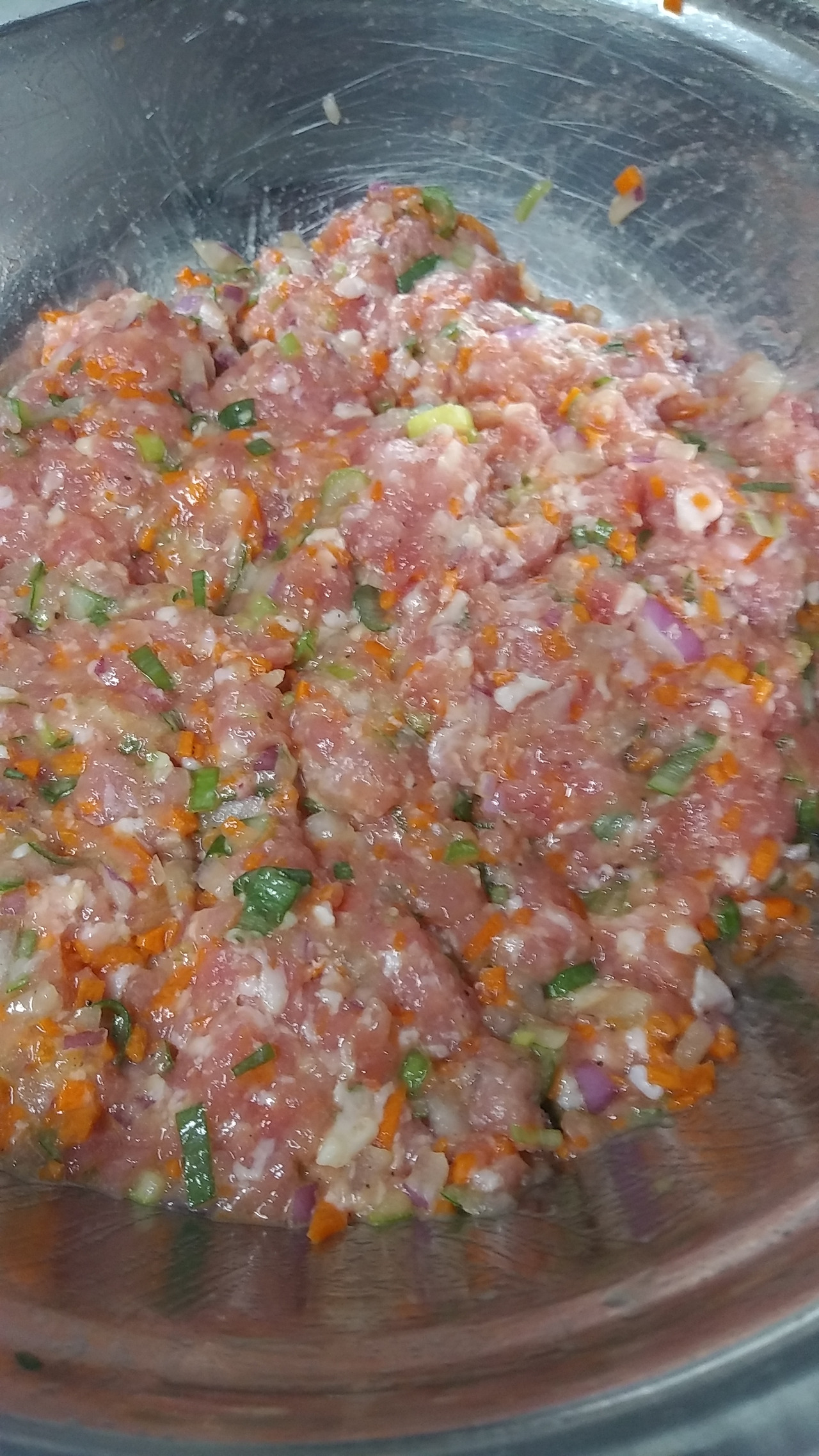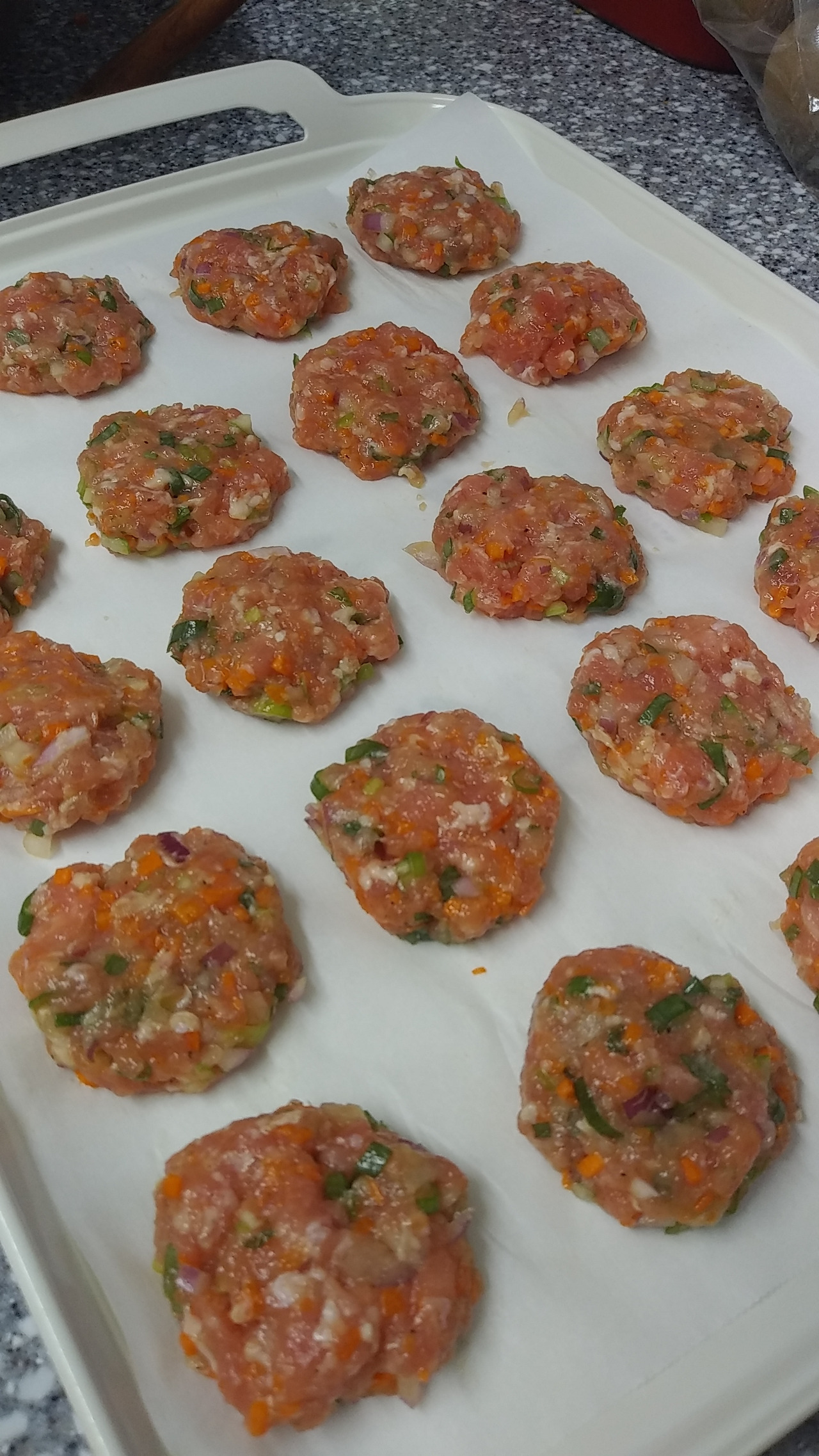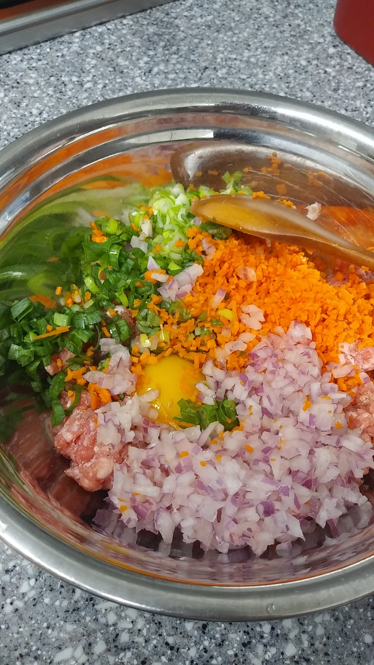 그런데 며칠 전, 뭐에 홀렸는지 장바구니에 돼지고기 다짐육과 대파를 넣고 바로 결제를 해서 다음날 배송이 왔다. 한 이삼일 냉장고 문 여닫아가며 저걸 어쩌지 하다가 유통기한 하루 남기고 결국 일을 벌였다.
