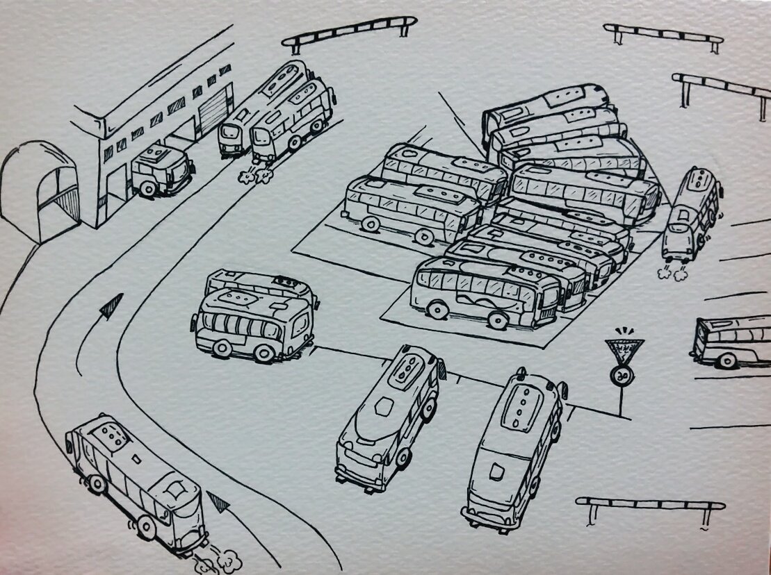 비슷비슷한 버스들이데 가는 목적지는 다르겠지요.