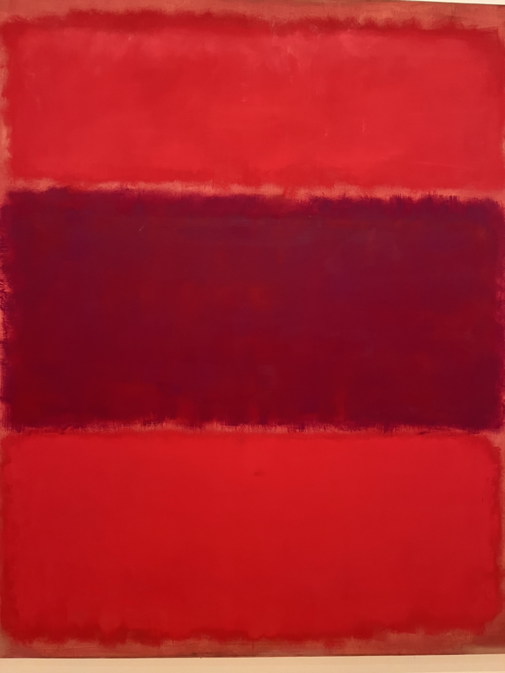 옆 방으로 건너가니 마크 로스코의 다섯 작품들이 맞아주었다. 레드, 시에나 퍼플, 다크 그린 등 로스코의 색들이 한 방을 가득 채우고 있었다. 워낙 작품의 크기가 압도적으로 크다 보니, 나 자신도 작품에 들어가 있는 듯한 착각이 들었다. 겹치고 겹치다 보니 오히려 투명해진 어떤 지점에 있는 칼라가 로스코의 칼라이다. 한국에서 전시할 때, 음악과 설정이 명상적이었고 그것이 작위적으로 느껴졌었는데 지나친 조명과 명상음악 없이 담백하게 감상하니까 로스코 자체에 집중할 수 있었다.