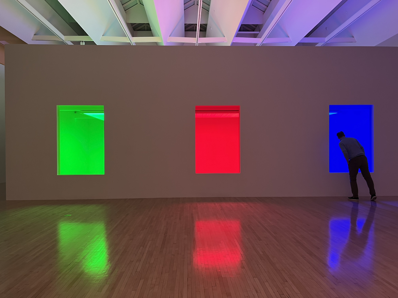 현재 MOCA Grand에서는 ‘집’에 관한 주제로 전시가 진행 중인데 입구부터 백악관을 모티프로 한 작품이 설치 되어있었다. 비닐을 바느질해서 설치한 백악관이 인상적이었다. 다음 방에는 거울 벽돌과 무지갯빛 천정의 집이 설치되어 있었고, 레드 그린 블루 세 가지 칼라의 방은 신발에 덧신을 신고 들어가 볼 수 있는 체험을 할 수도 있었다. 평생 빛을 연구하고 작품을 해 온 카를로스 쿠르즈 디에즈(Carlos Cruz-Diez )는 한국에서도 여러 번 전시를 했던 친숙한 작가이기도 하다.