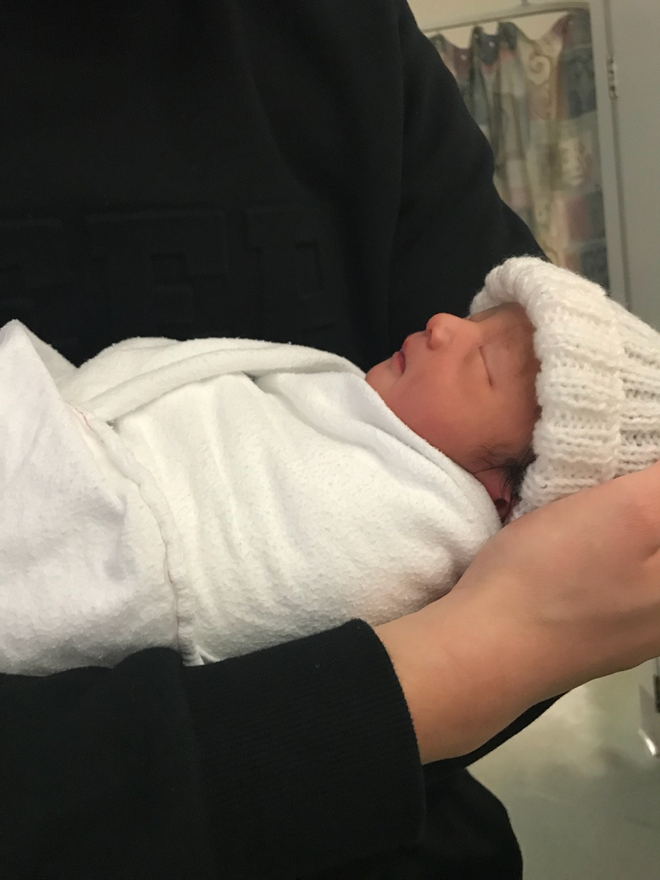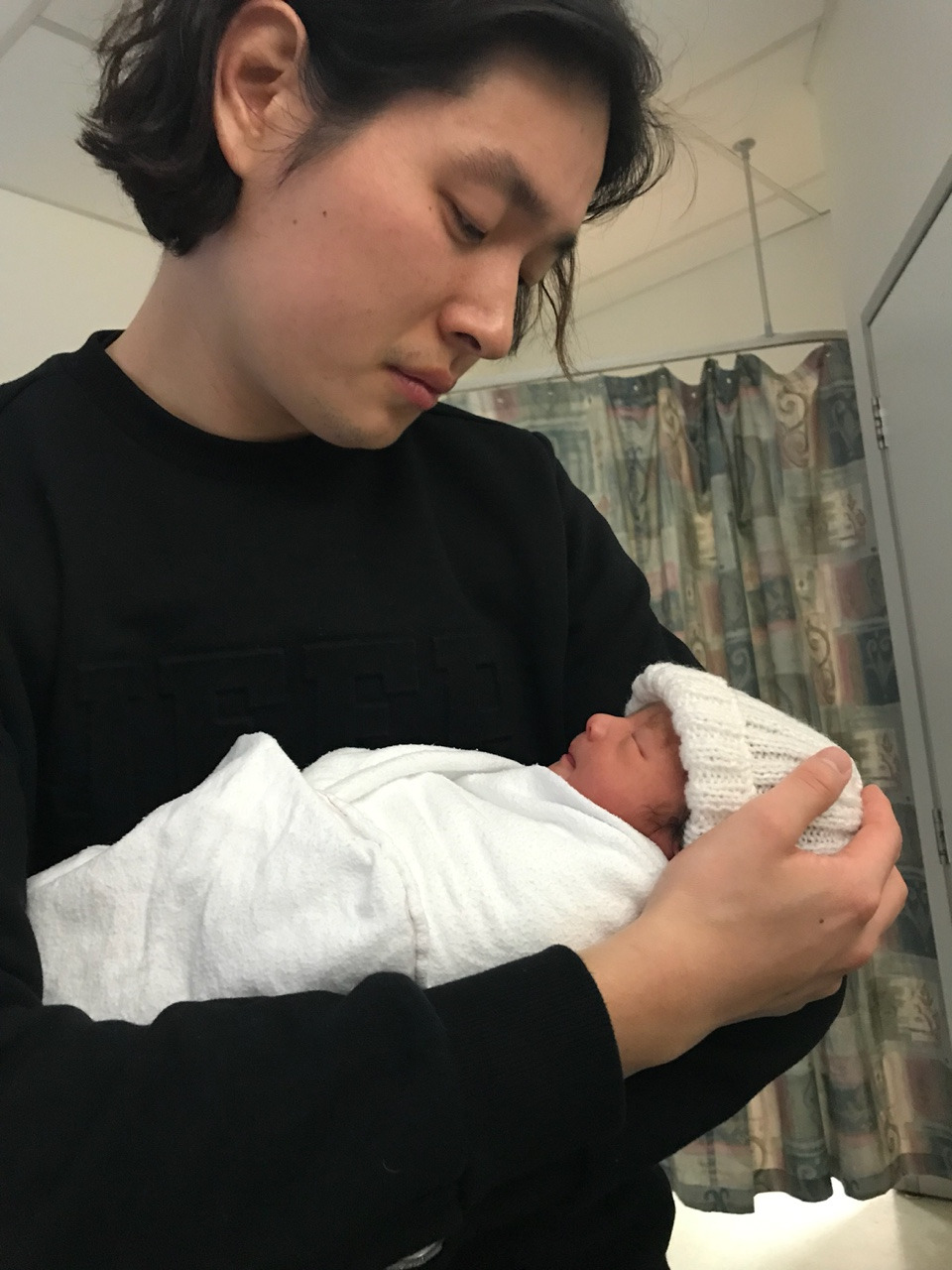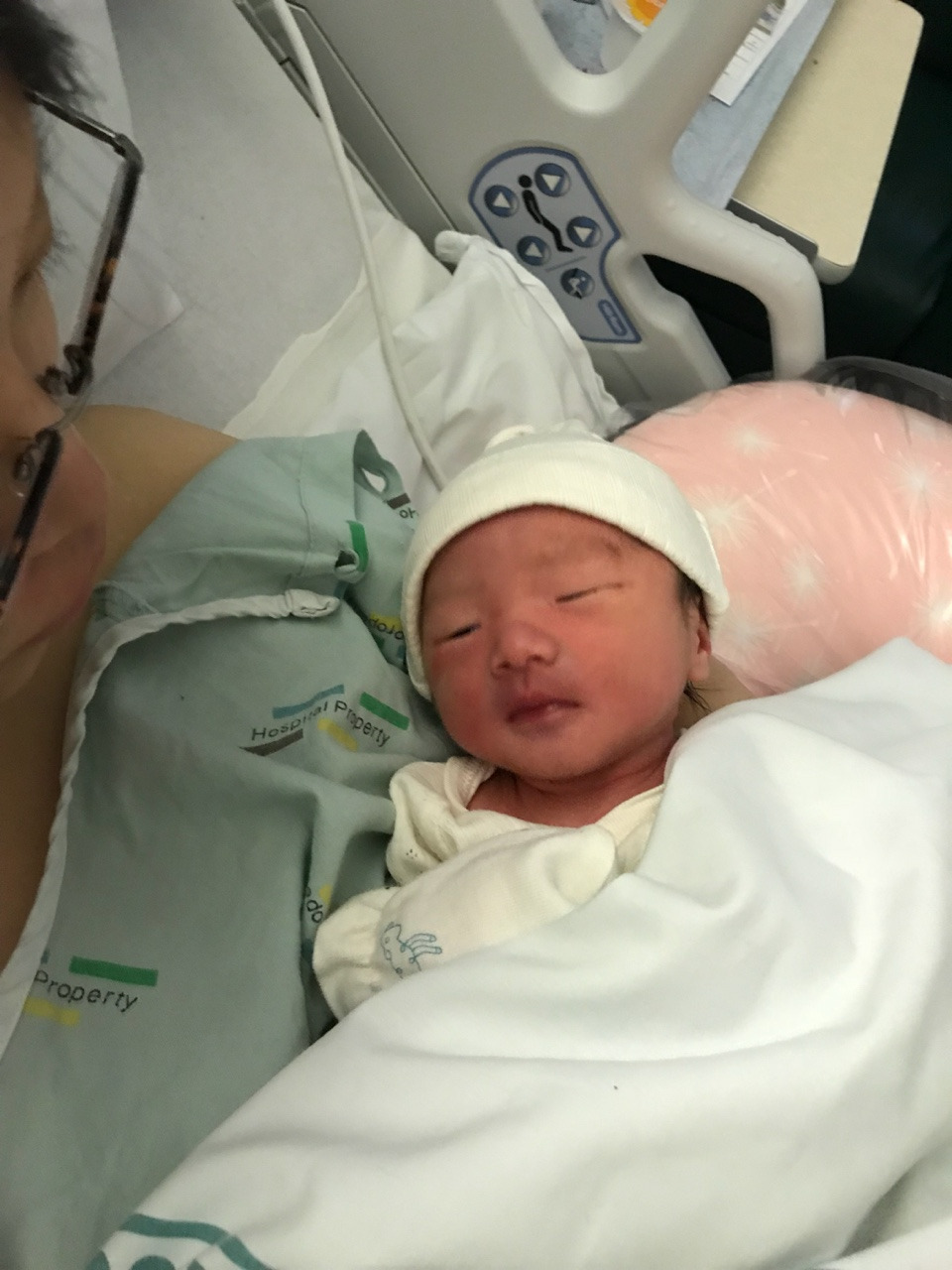 엄마 아빠가 야심 차게 준비해온 엘림이의 첫 옷은 보기에는 예쁠지 몰라도 실용성은 꽝이었습니다. ( ㅠㅠㅋㅋㅋㅋㅋㅋ) 지금 뉴질랜드는 한겨울입니다. 우리 엘림이 첫 옷엔 미안하게도 다리가 없었습니다. 보기만 해도 춥네요.... (엘림아 미안해 ㅠㅠ 엄마가 예쁜 거만 생각했나 봐....) 엘림이가 너무 추워 보였는지 미드 와이프는 '내가 아기를 쪼금 따뜻하게 해줄게! ^^' 하더니 엘림이를 데리고 나가 니트로 짠 털모자와 하늘색 카디건을 입힌 후, 스와들로 꽁꽁 싸매서 데려왔습니다. 아마도 옷을 미처 준비해오지 못한 산모들을 위해 신생아용 모자와 여벌 옷가지를 병원에서 준비해 놓았나 봅니다.