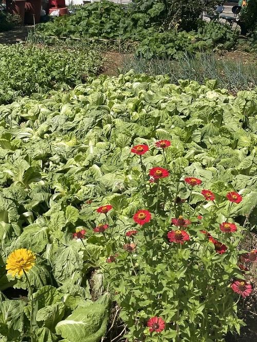 숙소에서 내려가면 왼쪽에 애호박밭 집이 있고(호박이 빨리 떨어져서 걱정이라는) 그 집 앞에 무와 배추를 키우는 집이 있다. 마침 할머니가 냄비와 호미를 들고 나오시길래 아침 인사를 드렸다.