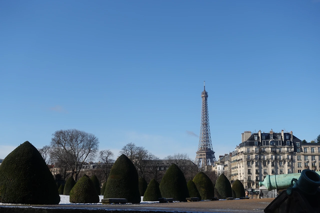 8호선을 타고 'La Tour Maubourg'라는 역에 내렸는데 눈 앞에 펼쳐진 파리의 겨울 풍경이 너무 아름다워서 나도 모르게 숨을 헉! 하고 들이쉬었다. 아마도 이전에 내린 눈이 아직 녹지 않은 것 같았다. 정말 눈이 시리도록 탁 트인 광경이었다. 파리에서 1년 살면 시력 좋아져서 갈 것 같아.
