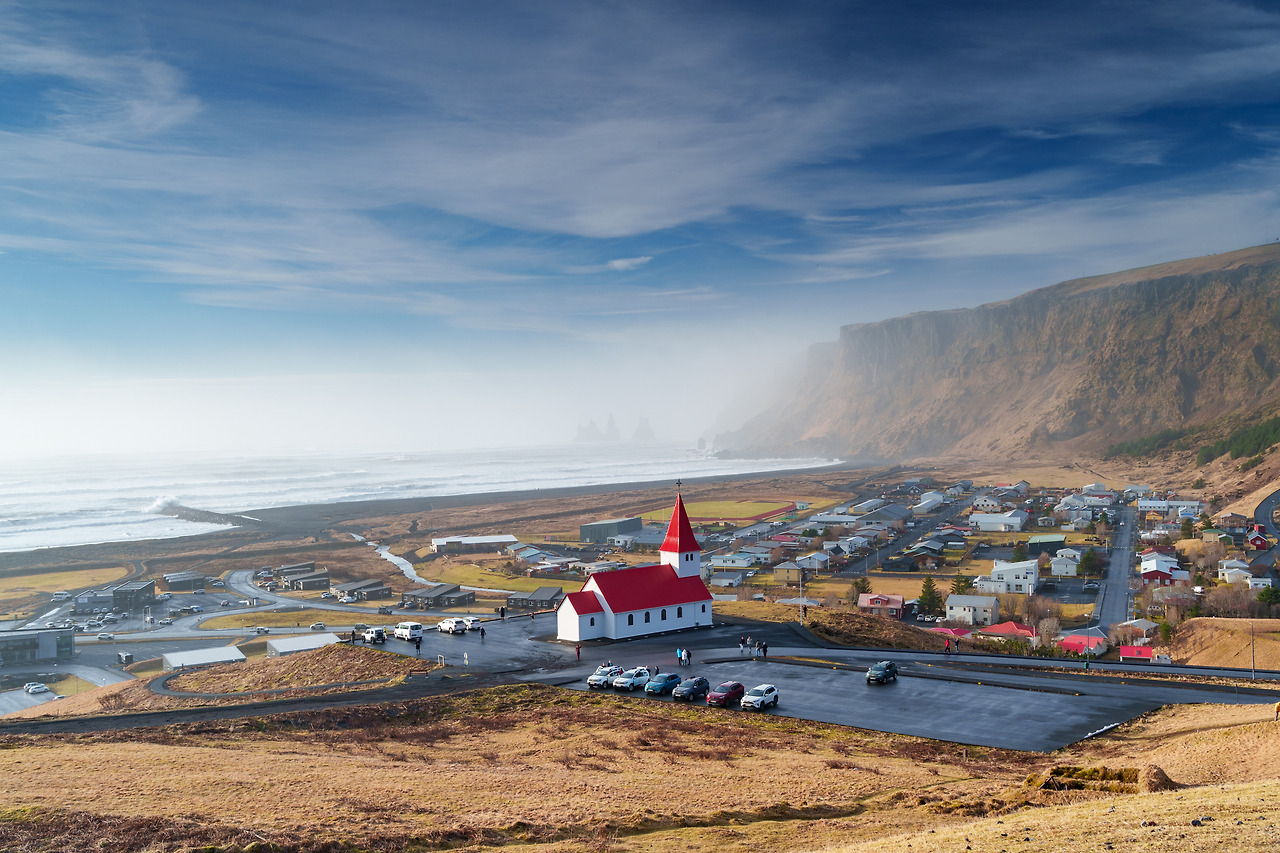 레이니스피아라에서 링로드로 들어선 지 10분도 채 되지 않아서 작은 마을이 보였다. 비크 마을일 거라 생각하며 지나가려는데 문득 언덕에 교회 하나가 눈에 띄었다. 하얀 건물에 빨간 지붕. 인터넷에서 자주 보던 건물이었다. 검은 교회처럼 힐끗 쳐다만 봐도 그림 같은 풍경이 나올 것이라 직감할 수 있었다.
