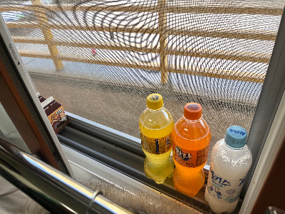 뭘 열지 말라는 건지 싶어서 가보았다. 한겨울 차가운 창틀 위에 탄산음료와 초코 우유가 줄지어 놓여있었다. 아이들은 자기 음료도 넣어두고 싶어서 냉장고 문을 자꾸 여닫았다. 조르륵 놓인 음료수가 너무 귀여웠다. 냉장고 소식을 듣고 구경하려고 온 아이들과 어이가 없어서 함께 웃었다.