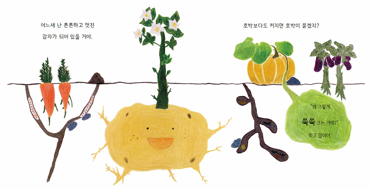 다른 3학년 아이들은 빈칸을 그럴듯하게 채워왔다. 구독자 100만 유튜버도 있고, 야구 선수도 있다. 장래희망 단골손님인 의사, 변호사도 물론 있다. 구독자 100만 유튜버가 되기 위해서 이틀에 한 번씩 영상 올리기. 의사가 되기 위해 매일 공부를 열심히 하기. 그래, 그래. 맞는 말이지. 슥슥 수행평가지를 무심하게 넘기다가 내 꿈은 ‘감자’라고 쓴 것을 발견했다.