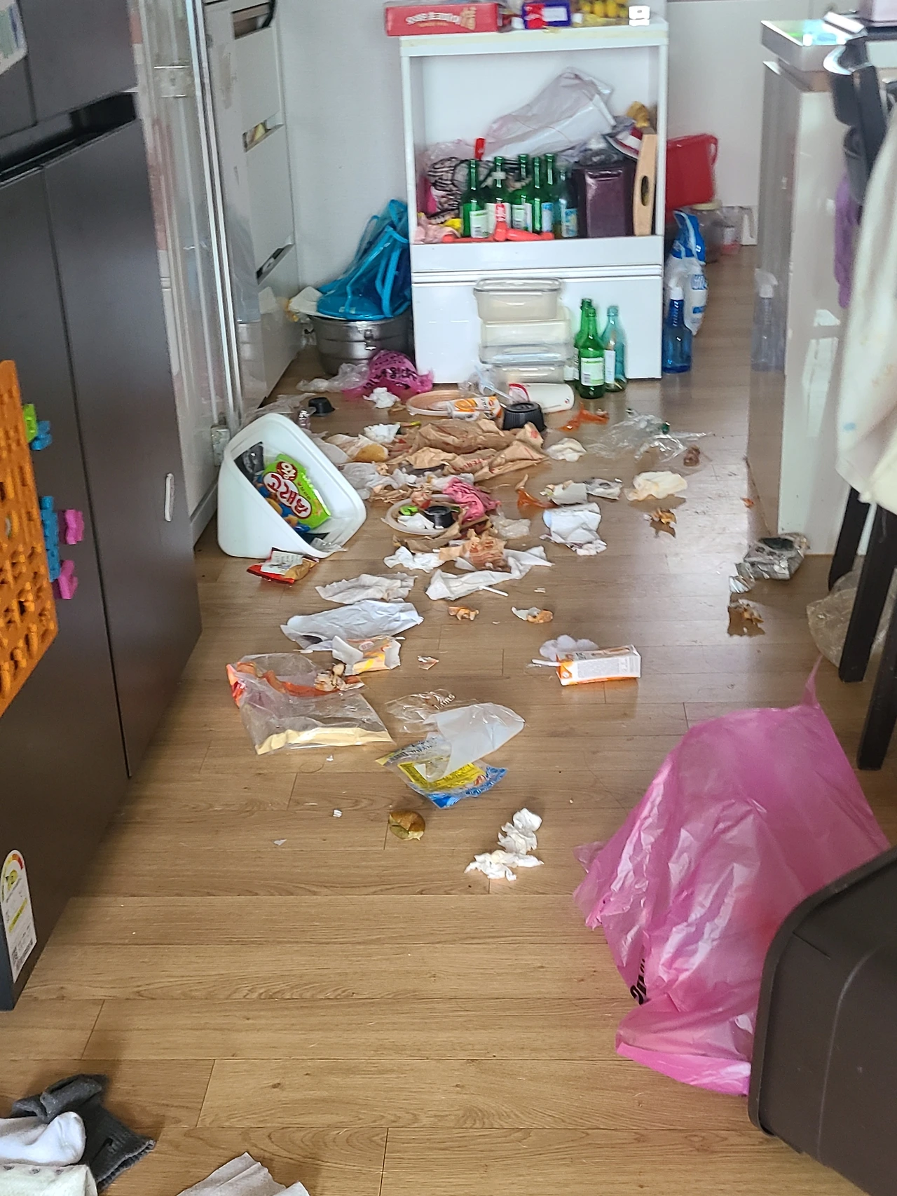 쓰레기통을 치우고 온다는 사실을 깜빡하고