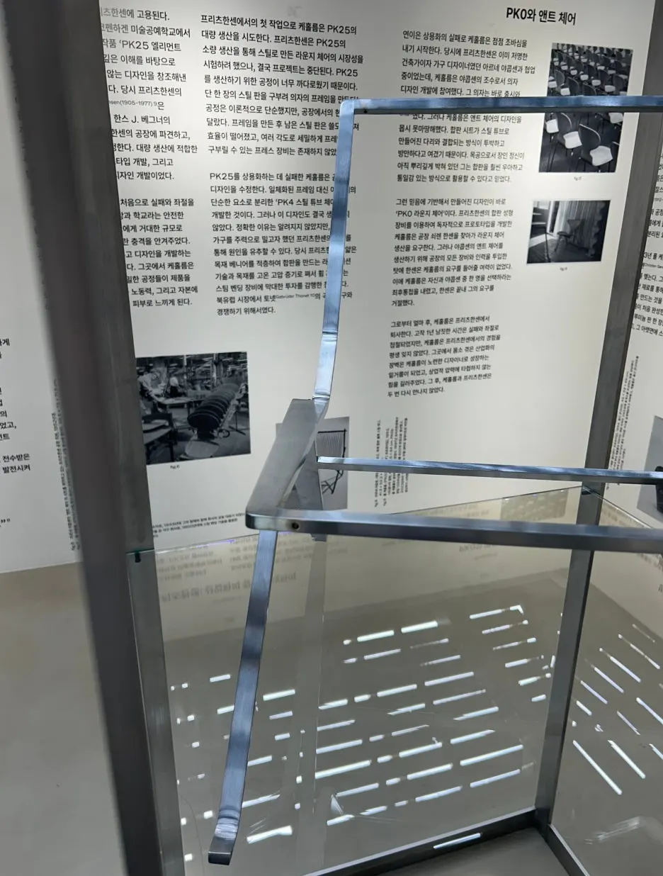 전개도가 전시된 유리관 앞 구석에 덩그러니 놓여있던 의자,