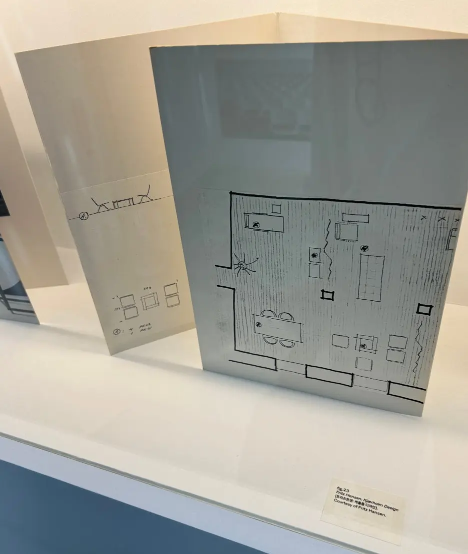 그가 가구 배치 시뮬레이션을 그린 도면이 전시되어 있었고