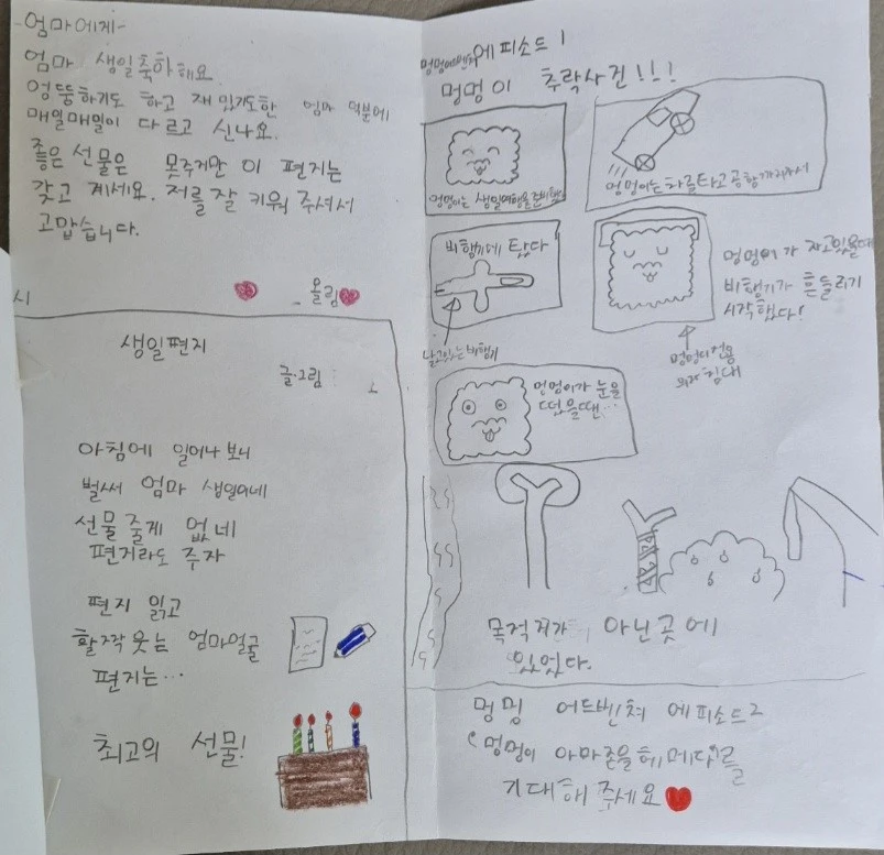 그리고 두 번째는 9살 아들이 4.26일(토) 엄마에게 보낸 생일 편지입니다.