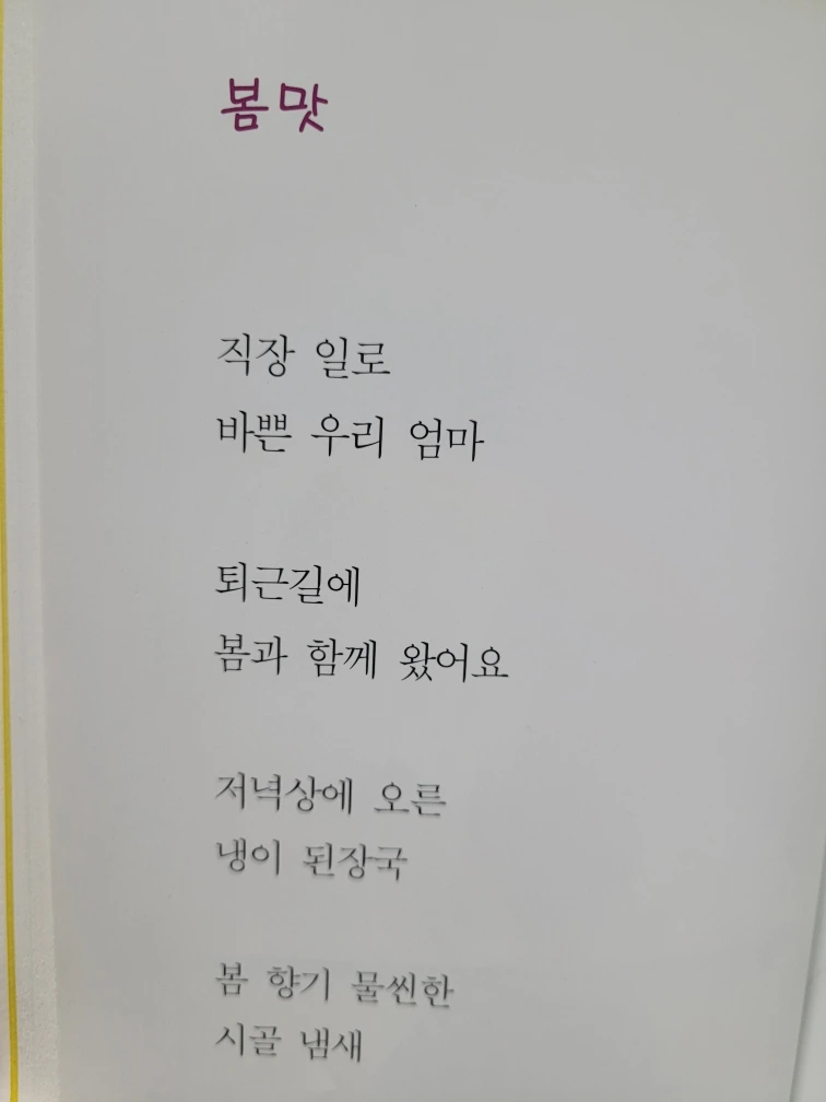 봄 친구에게 내년에도 변함없이 '봄 향기 물씬한 시골 냄새' 가지고 찾아와 달라고 『봄 맛』 편지를 보냅니다. 봄의 맛이 가득한 동시를 보니, 오늘 저녁은 냉이 된장국이 먹고 싶네요~