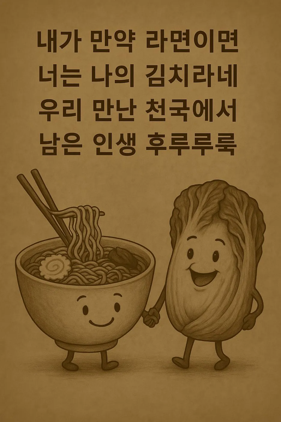 세상에는 남과 여, 낮과 밤이 있듯 라면에는 김치가 있어야 합니다.