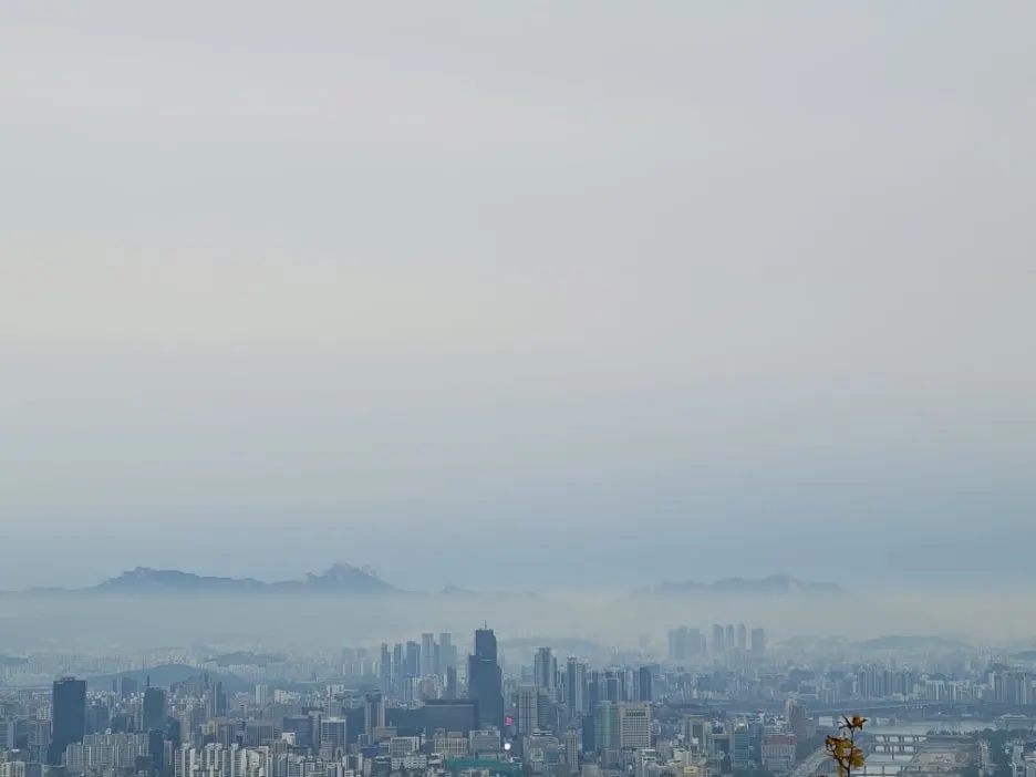 2연은 대모산 정상에 올랐으나 아직 해는 뜨지 않아 바로 밑 헬기장에서 서울 시내를 보니 살짝 안개로 뒤덮인 도시와 강의 몽환적인 풍경을 묘사해 봤어요.