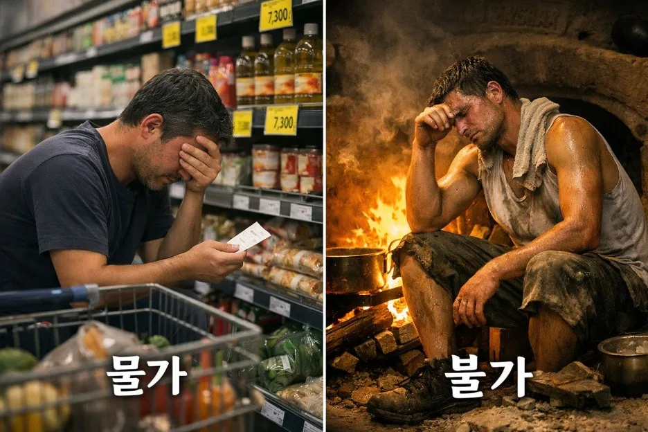 여기서 ‘물가’는 생필품의 가격, 즉 경제적 생존의 경계를 의미합니다. “무서워서”라는 말은 단순한 감정이 아니라, 생활 기반이 흔들릴 때 느끼는 실존적 공포입니다. 물가가 오르면 생존이 위협받고, 그 앞에서 인간은 아무것도 할 수 없게 됩니다. 이 구절은 현대인의 불안과 무력감을 아주 간결하게 드러냅니다.