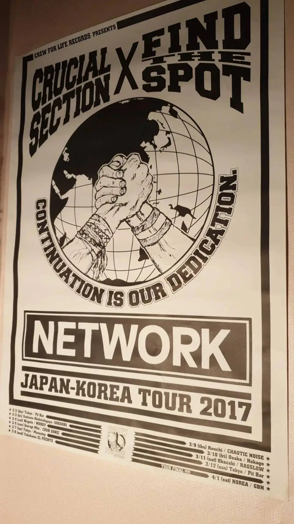 두 번째 전일 투어, NETWORK / CONTINUATION IS OUR DEDICATION. 이번엔 서로가 서로에게 훨씬 익숙해져 있었다. 어느 도시에서는 누가 우리를 보러 올지, 어느 라이브하우스의 뒷풀이는 어떻고 뭐가 맛있는지, 어디에서 자고 씻을 수 있는지 웬만큼 알고 움직이는 투어. 처음 만난 외국 밴드가 아니라, 이미 몇 번이나 같이 먹고 자고 달려본 동료들끼리 도는 투어였다.