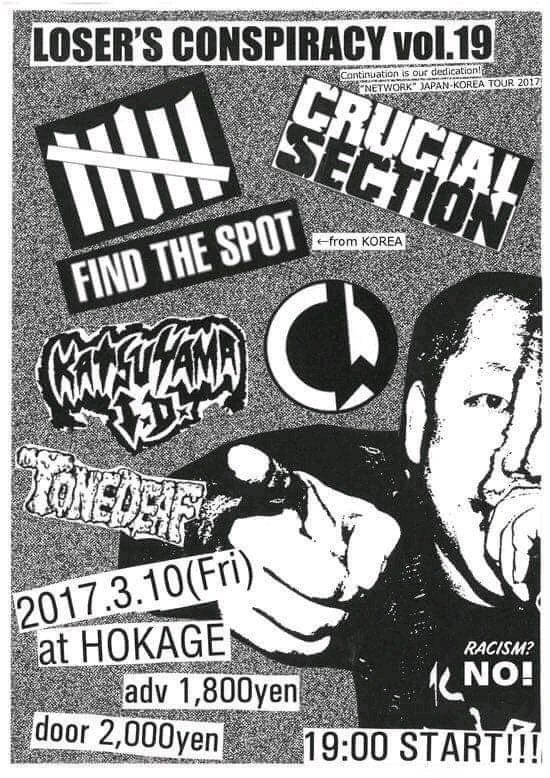 첫 밴드는 KATSUYAMA I.D. 였다. CRUCIAL SECTION과 같은 반다나 스래쉬 스타일. 80년대 크로스오버 스래쉬의 기운이 물씬 느껴지는 음악이었다. 빠르고 경쾌했다.
