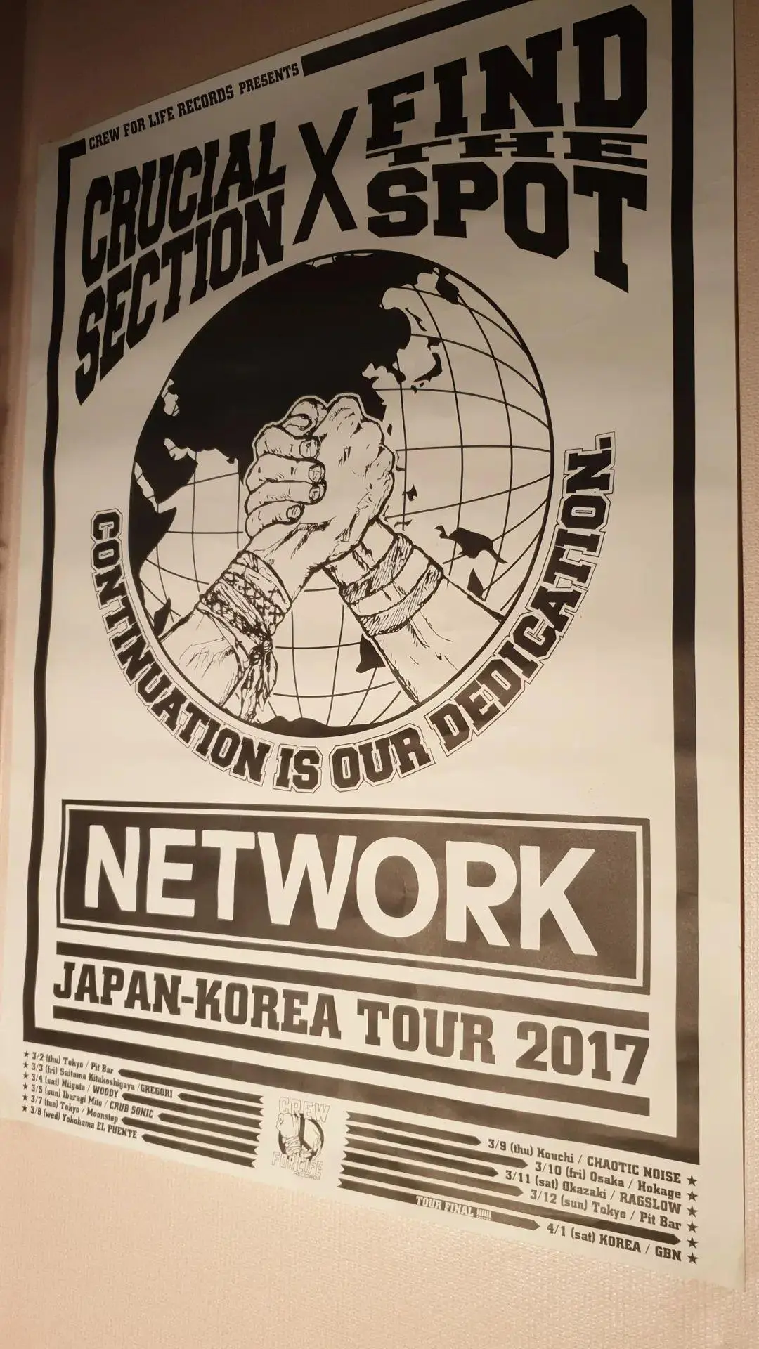 사실 CRUCIAL SECTION은 일본 하드코어에서 매우 중요한 이름이다. 도쿄의 써클핏 문화와 직결된 에너지를 계속해서 증명해온 밴드. 단순히 음악을 연주하는 팀이 아니라, 그 에너지가 모이는 장소를 지켜온 사람들이고, 하나의 스타일을 구축한 주체들이었다. PIT BAR라는 공간을 이끌어 가고 있는 존재. 그들과 손을 잡고 여러 차례 투어를 할 수 있었다는 건, 내 삶에서 분명히 굉장한 사건이었다.