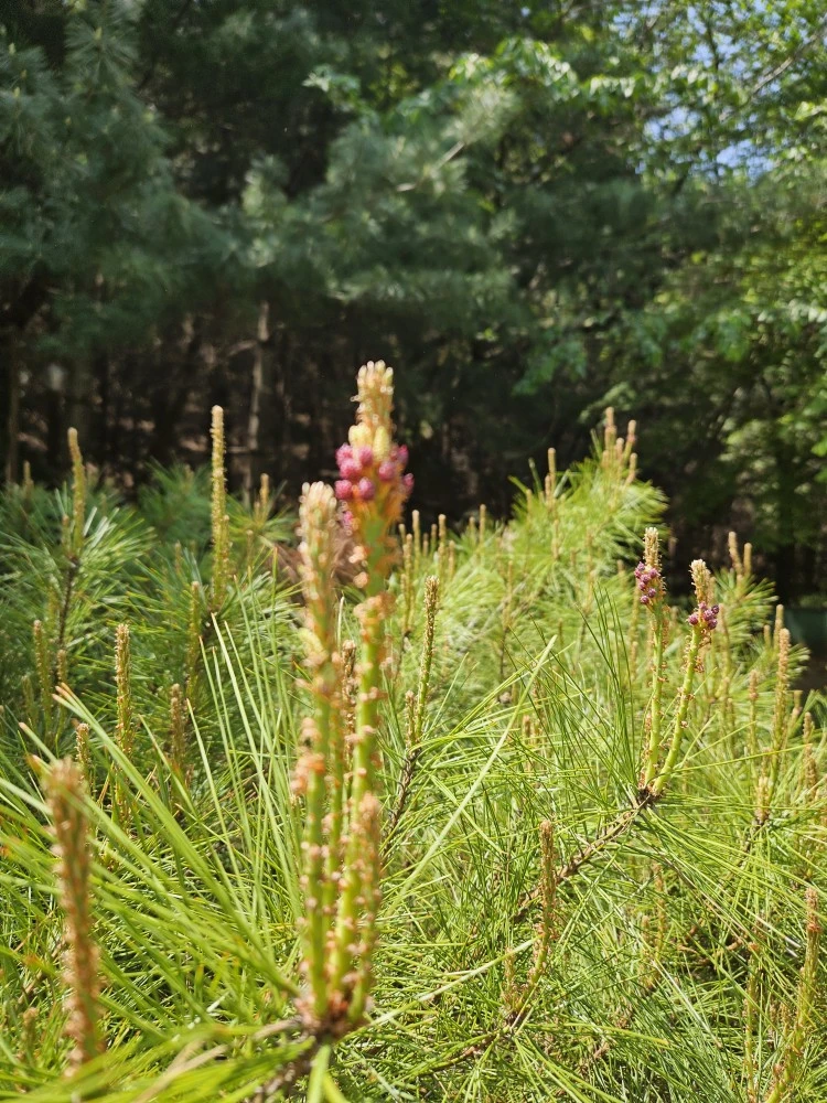 아는 재미가 따르니 정원의 소나무, 철쭉이 다시 보였습니다. 이야기를 가지는 것은 사물에 새로운 생명을 부여하는 듯합니다. 소나무의 암꽃을 처음 보았습니다. 옆에 핀 수꽃도 처음 보긴 마찬가지였습니다.
