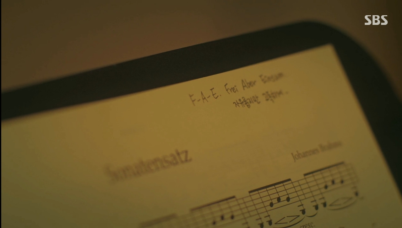 "오늘 우리 연주한 곡이요. F-A-E 소나타. 자유롭지만 고독하게라는 뜻이잖아요. 하지만 나는 준영 씨가 자유롭고 행복했으면 좋겠어요."