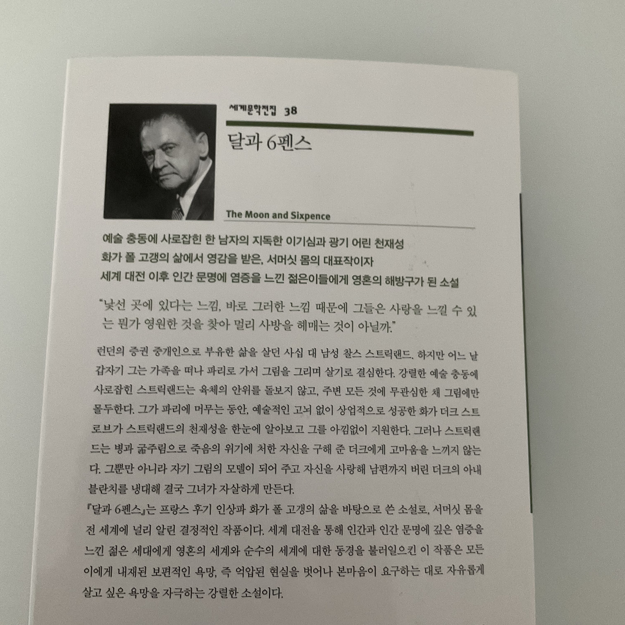 서머싯 몸의 『달과 6펜스』에서 가장 기억에 남는 인물은 후반부 잠깐 등장하고 사라지는 브뤼노 선장이다. 그는 스트릭랜드를 회상하며 이렇게 말한다. "내 경우만 보자면 그 사람에게 공감을 느낀 게 별로 이상할 건 없어요. 우린 서로 모르고 있긴 했겠지만, 결국 같은 것을 지향하고 있었으니까요." 해군에서 복무하며 번 돈을 단번에 잃고 아내와 타히티의 한 무인도에 들어가 섬을 꾸미며 자식을 낳아 기른 브뤼노 선장-물론 입지전적인 인물이긴 하지만-. 그가 그림에 대한 열정으로 아내와 자식을 버리고 부랑자처럼 살아가는 스트릭랜드의 그 무엇과 '같다'는 말인가! 의아한 마음에 눈이 글을 읽어 내려가는 속도조차도 견딜 수 없이 조급해져 빠르게 책을 훑고-살짝 안정을 찾은 후-, 다시 앞으로 돌아와 찬찬히 문장을 읽기 시작했다.