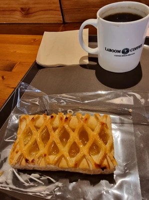크리스피한 파이 조각이 완전히 입안에서 가라앉을 때